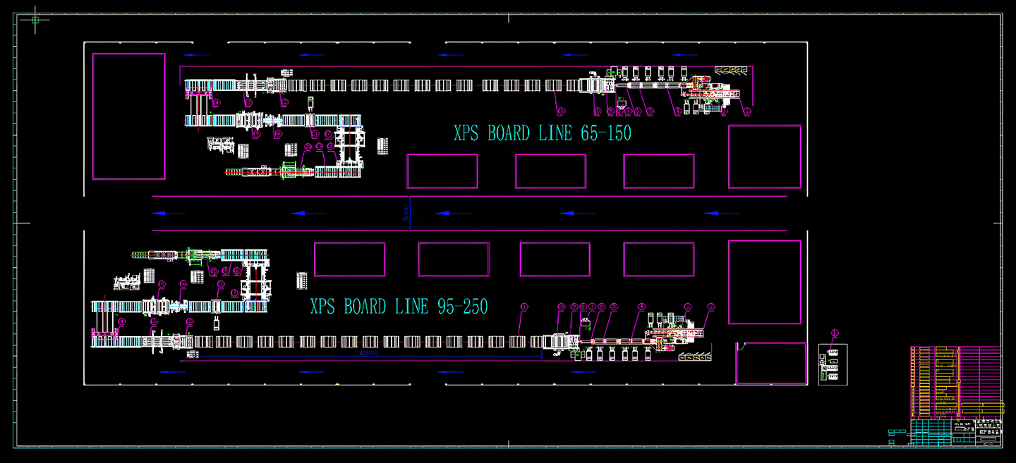 MXZ provides a complete downstream auxiliary system solution with the capability to produce all types of board profiles available on the market. Our system includes: aligning tables, haul-off units, cut-to-length saws, edge trimmers, embossing machines, surface texturing units, horizontal/vertical grooving machines, double-sided grooving machines, stackers, automatic packaging machines, shrink wrapping machines, coding printers, lump crushers, and granulators, among others.